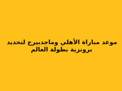 موعد مباراة الأهلي وماجدبيرج لتحديد برونزية بطولة العالم