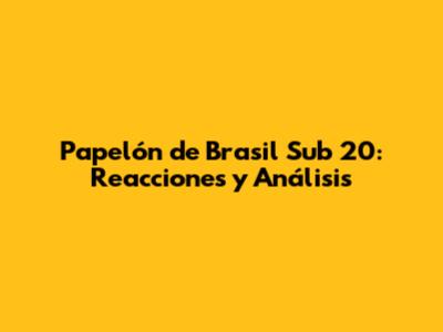 Papelón De Brasil Sub 20: Reacciones Y Análisis